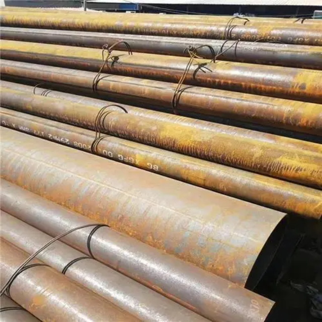 阜阳gb3087无缝钢管要用钢锭或实芯管料经破孔制成毛管,随后经热扎、冷轧或冷拨制成。阜阳gb3087无缝钢管在中国钢管业中具备重要的位置。据不完全统计,我国目前无缝管生产公司约240多家,无缝管机组约250多套,年产能力约450多万吨。从规格看,阜阳gb3087无缝钢管的原料是圆管坯,圆管胚要经过切割机的切割制作成长短约为1米胚料,并经输送带送至溶炉内加温。钢坯被送进溶炉内加温,温度约为1200℃。燃料为氢气或乙炔。炉内温控是关键性的难题.圆管坯出炉后要经过压力穿孔机开展穿空。一般较常见的穿孔机是锥形辊穿孔机,这类穿孔机生产效率高,产品品质好,破孔扩径量多,可穿多种钢种。破孔后,圆管坯就先后被三辊斜轧、连轧或挤压。挤压后应脱管定径。定径机根据锥形钻头高速运转入钢胚打孔,产生钢管。钢管内径由定径机钻头的直径长短来决定。钢管经定径后,进入冷却塔中,根据喷水冷却,钢管经冷后,就要被校直。钢管经校直后由输送带送往金属探伤机(或压力试验)进行内部探伤。若钢管内部有裂痕,气泡等问题,将被检测出。钢管质检后还要通过严格手工选择。钢管质检后,用漆料喷上编号、规格、生产日期等。并由吊车吊入仓库里。